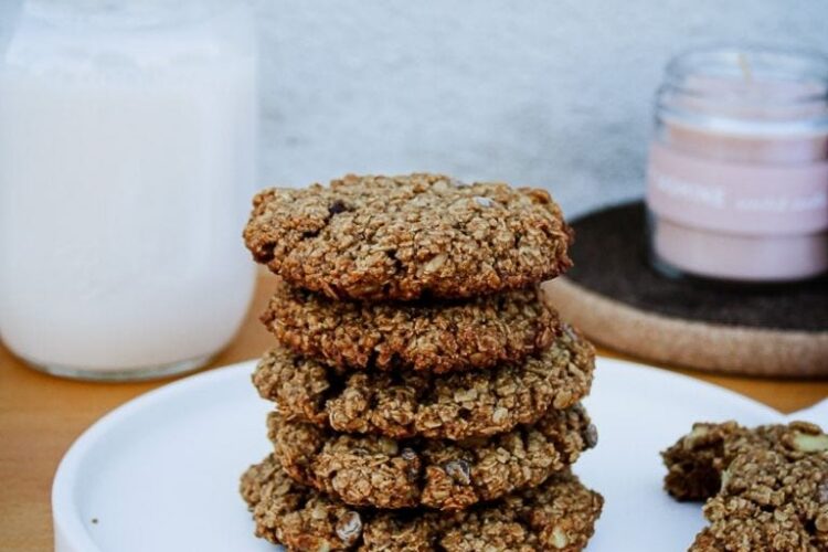 These delicious oat cookies are gluten-free, dairy-free, and free of artificial flavors and colors. They are loaded with oat fiber and spices. Furthermore, these healthy oatmeal cookies are sweetened with coconut sugar and moistened with applesauce. We used coconut oil, which, besides giving the cookies an extra kick of flavor, gives them that moist, crunchy consistency when paired with the oat and sugar.
